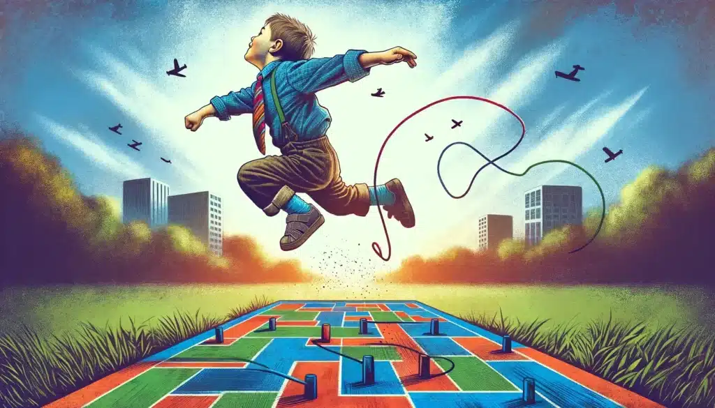 El juego del avioncito también es una excelente oportunidad para practicar habilidades de coordinación. Los niños deben trabajar juntos para mantenerse en equilibrio mientras saltan sobre el avióncito, lo que ayuda a desarrollar la capacidad de coordinación entre los miembros del equipo. Esta práctica no solo mejora su habilidad para saltar, sino también fomenta la comunicación y la colaboración.